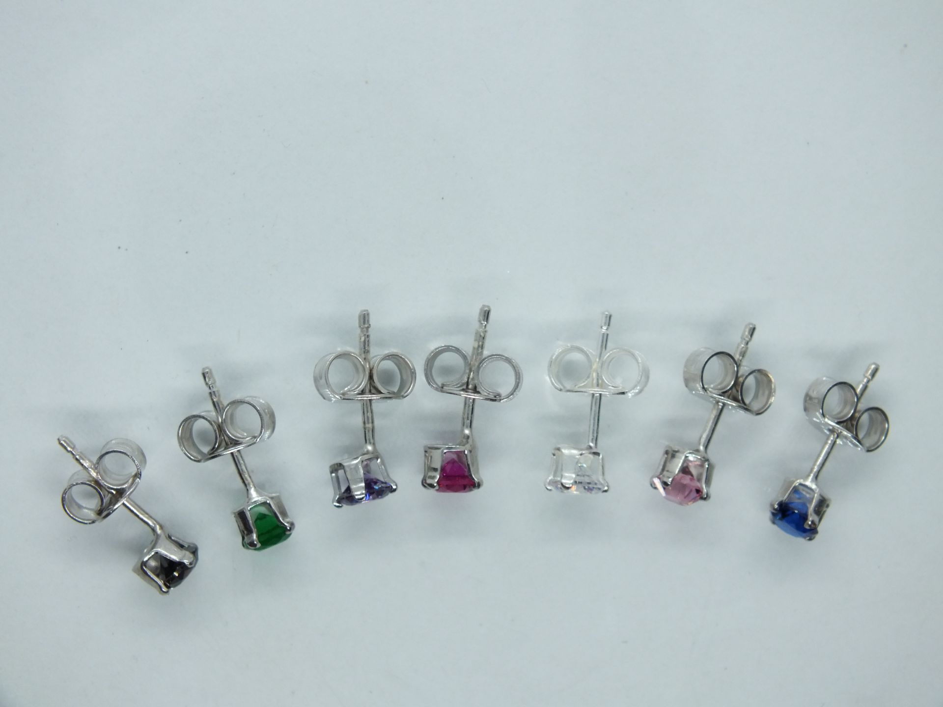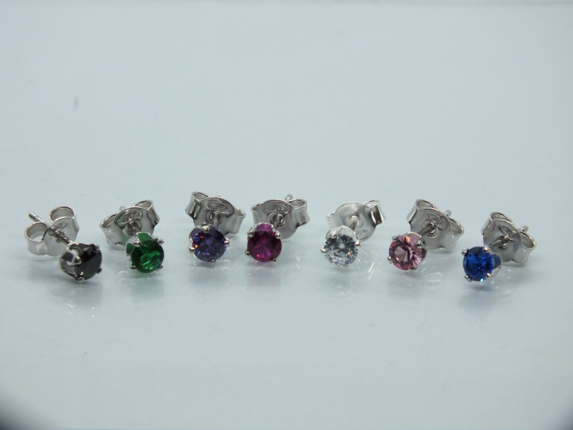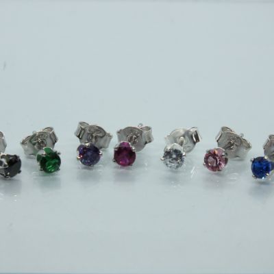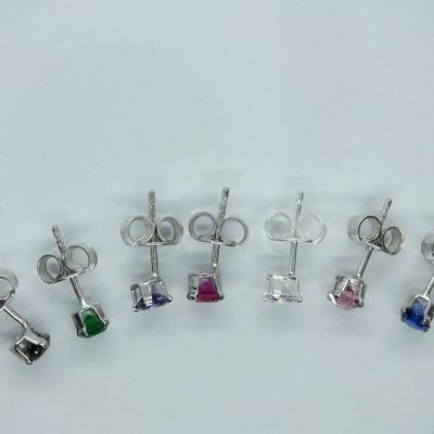 Ezüst női fülbevaló, átlátszó és színes cirkónia kő foglalatban. Halvány és sötét rózsaszín, lila,kék,zöld és fekete színekben ródium bevonattal kapható. Átlátszó,világos és sötét rózsaszín,lila színben pedig ródium bevonat nélkül is kapható.Színválasztást a megjegyzés rovatnál kell feltüntetni.