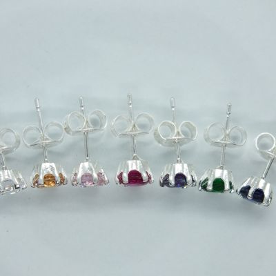 Női ezüst fülbevaló, átlátszó és színes cirkónia kövek foglalatban. Piros és aranybarna színű kövekkel kapható. Színválasztást a megjegyzés rovatnál kell feltüntetni.