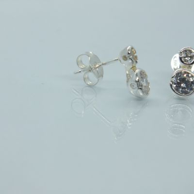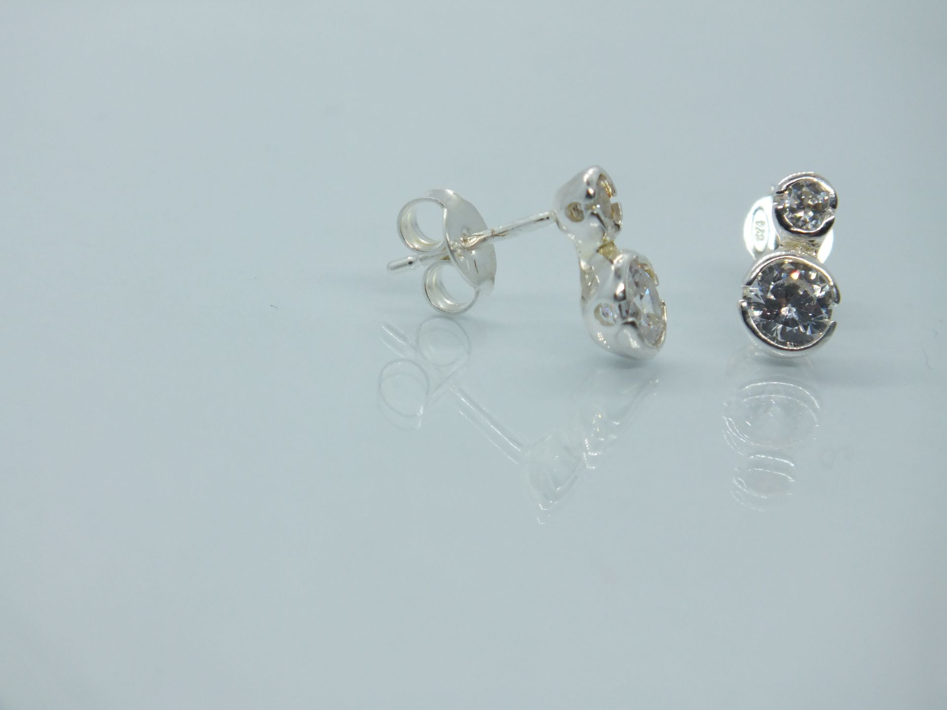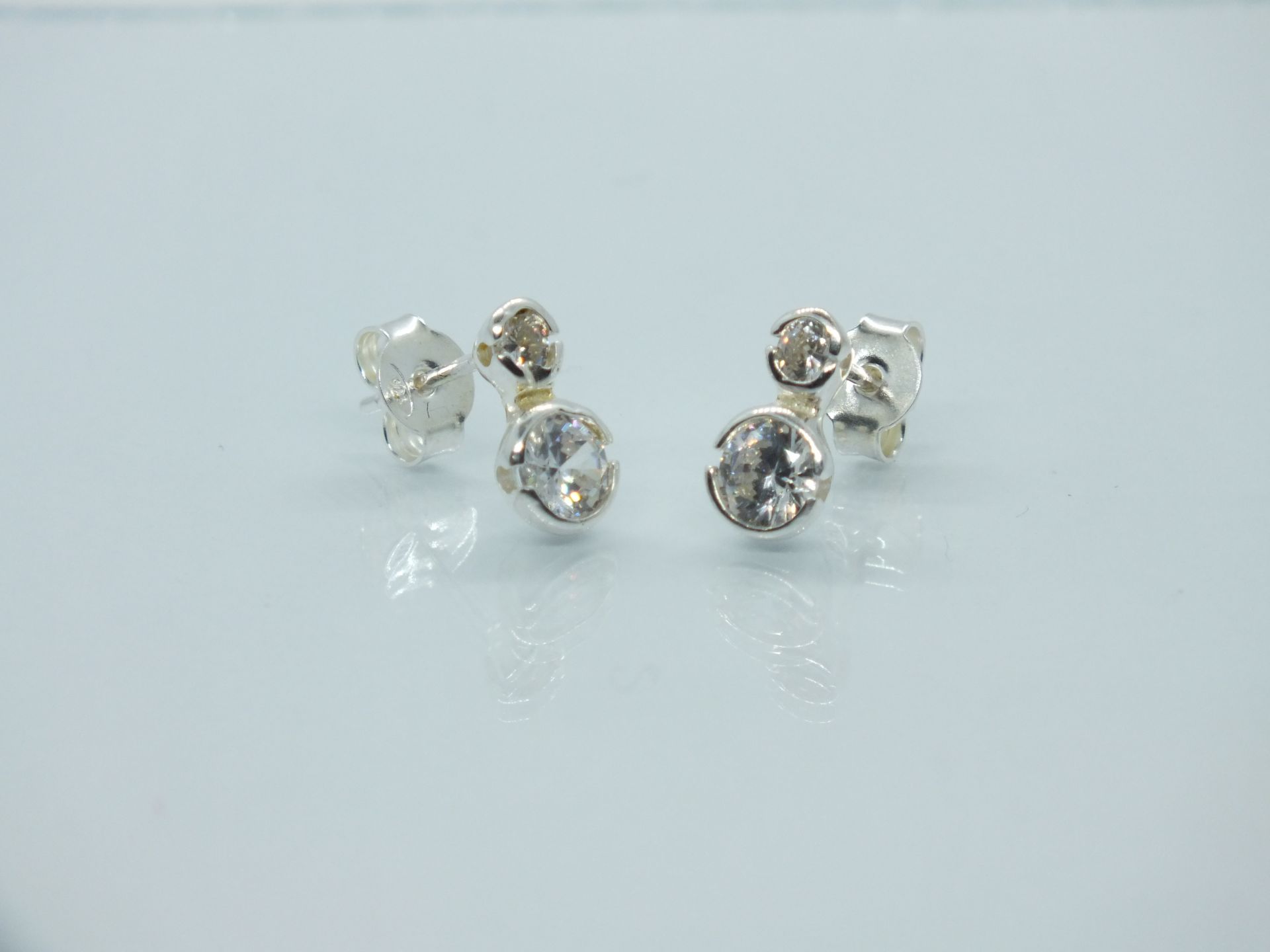 Női ezüst fülbevaló,két kerek átlátszó cirkónia kőből áll,melyek egymás alatt vannak elhelyezve.