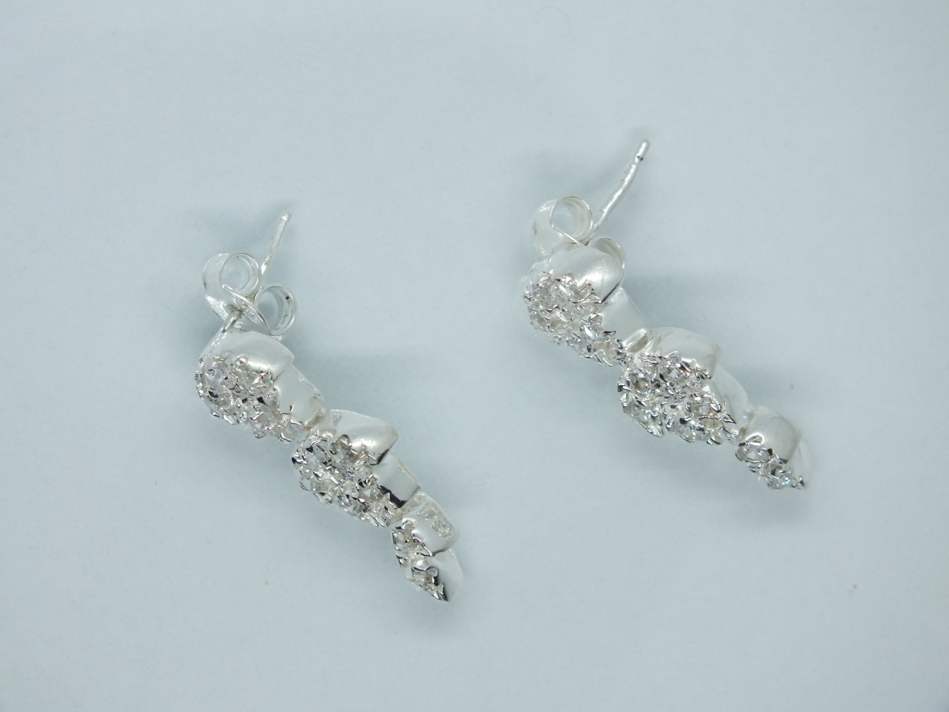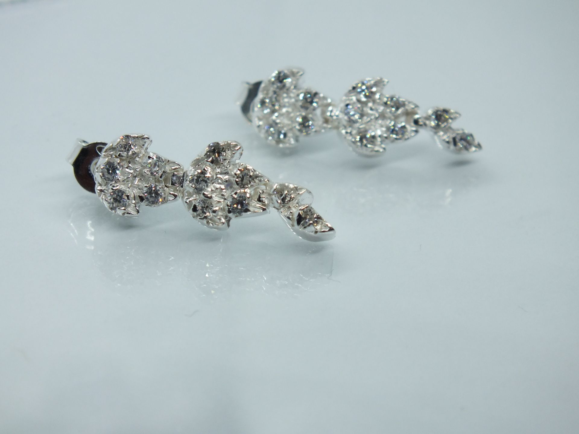 Női ezüst fülbevaló,levél forma cirkónia kövekkel díszítve. Fülbevaló hossza:1,4cm Átmérője:3,5-13,4mm-ig