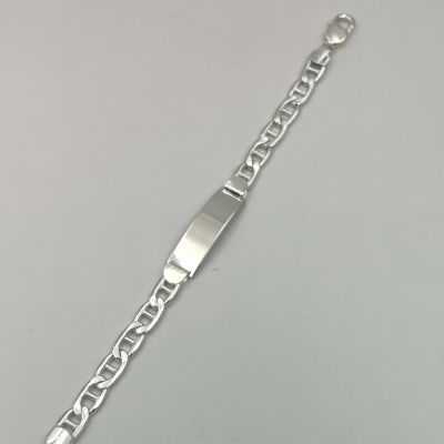 Ezüst karkötő üreges pálcás pancer stílus fényes táblával.
