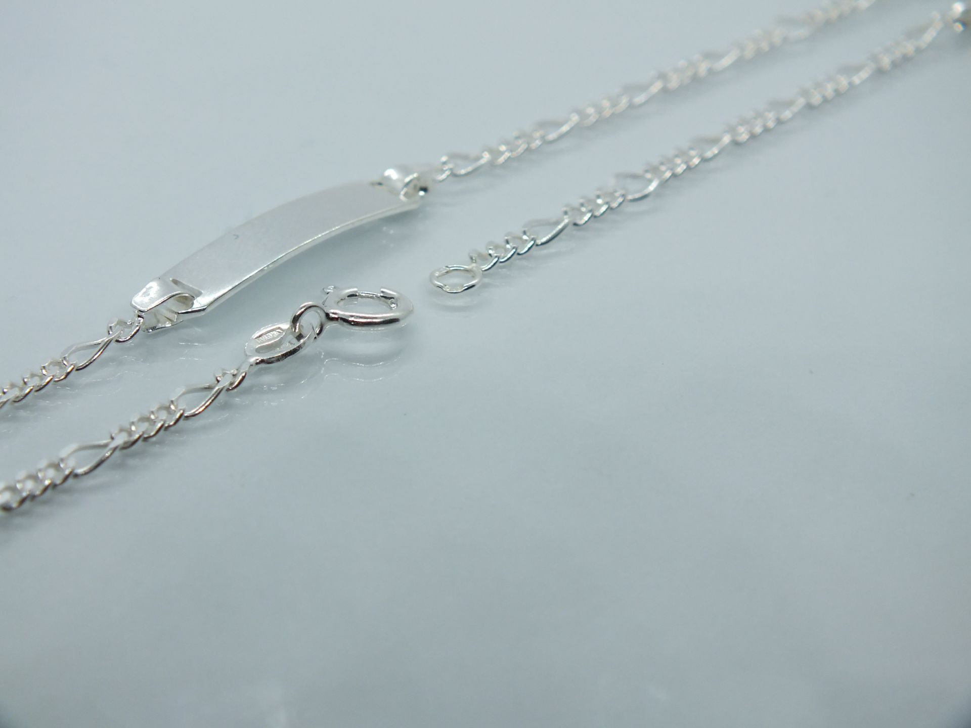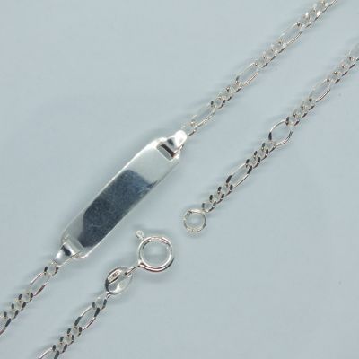 Ezüst női karkötő figaró stílus.Közepén fényes tábla.