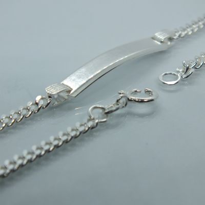 Ezüst női karkötő sűrűn kapcsolt láncszemek pancer stílus,közepén fényes tábla.