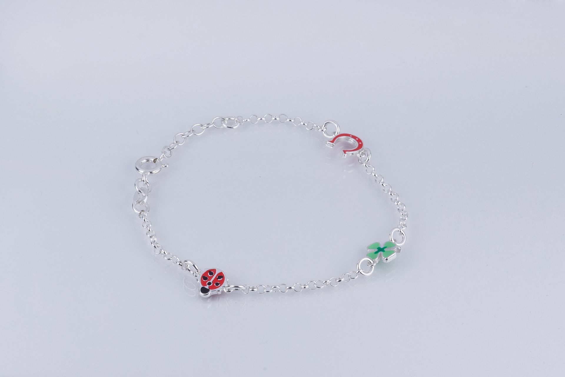 Ovális szemekből álló ezüst karkötő medálokkal díszítve.Anker stílus. Állítható hossz: 16-18cm-ig Lánc szélessége: 2,1mm