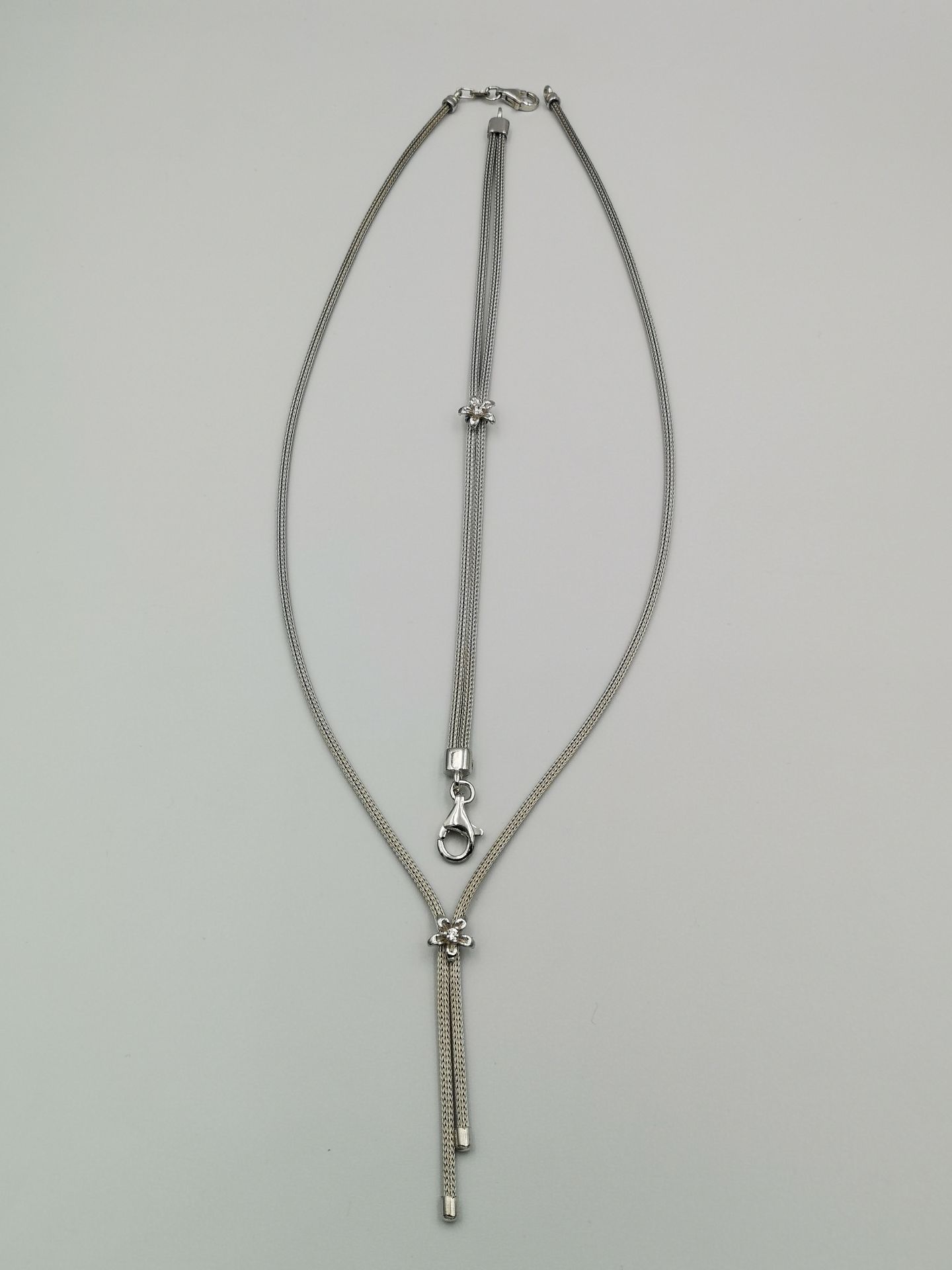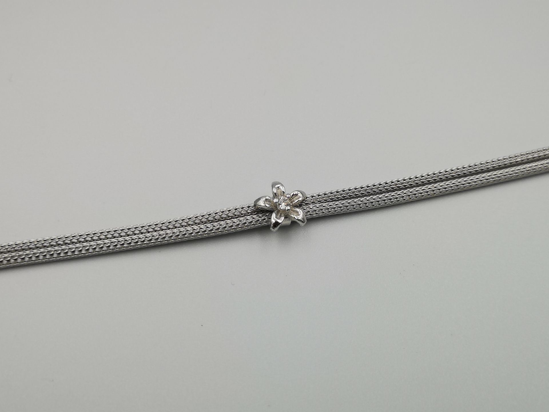 Ezüst 2szálból álló női karkötő virág medál közepén cirkónia kő díszítés. Ródium bevonattal van ellátva,hogy jobban ellenálljon a környezeti hatásoknak és sokáig megőrizze az ezüst fényét. A karkötő mellé nyaklánc is kapható melynek cikkszáma: LCZ FL1