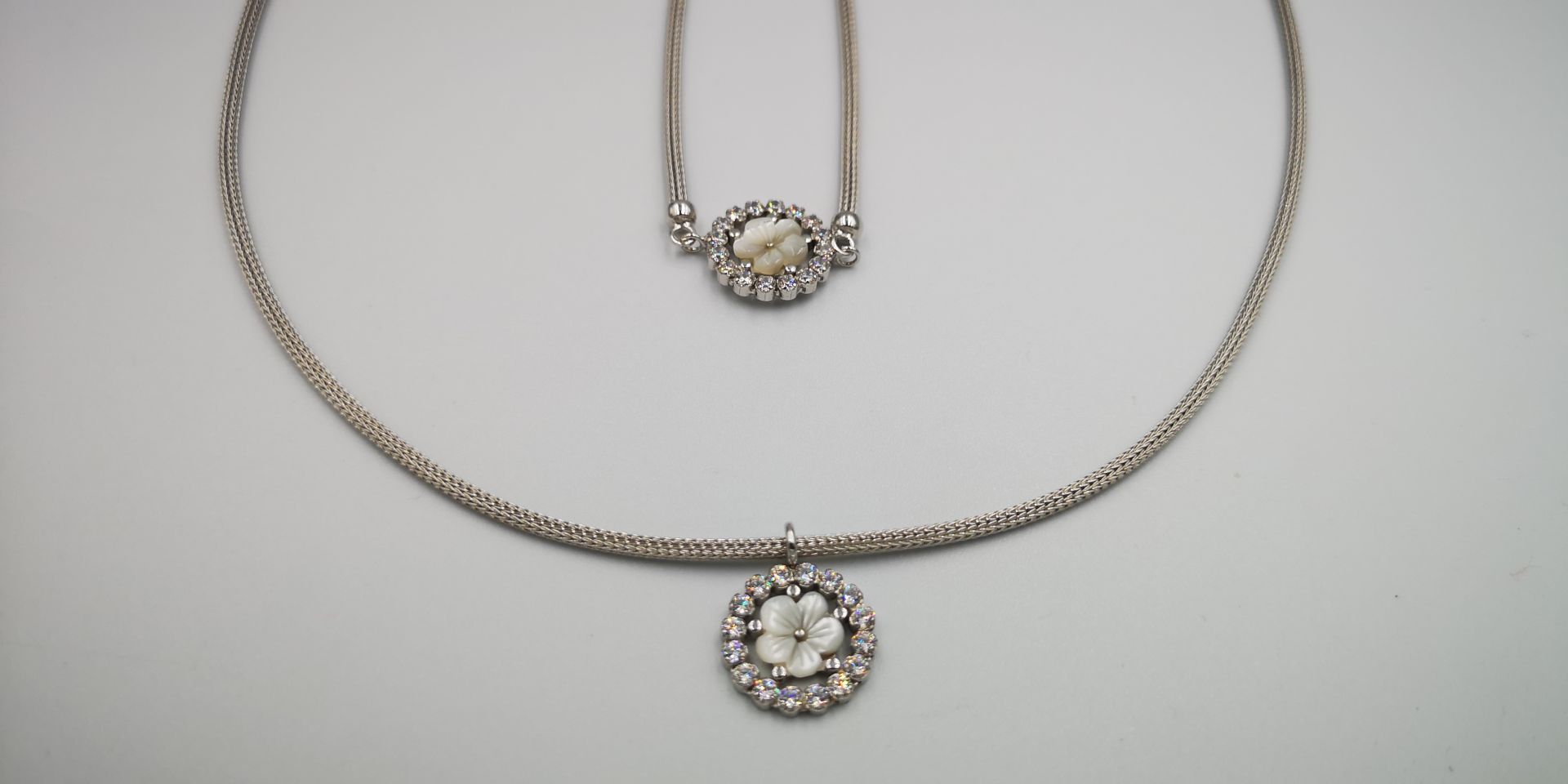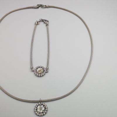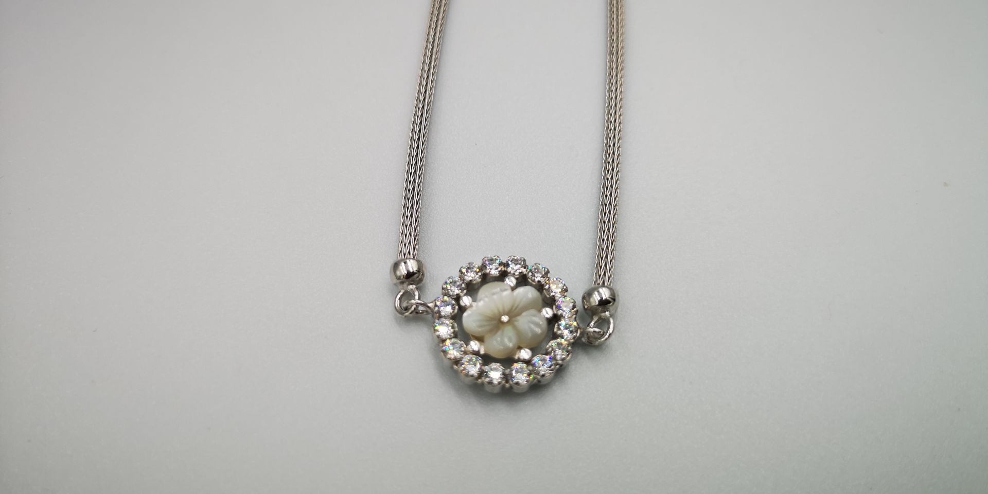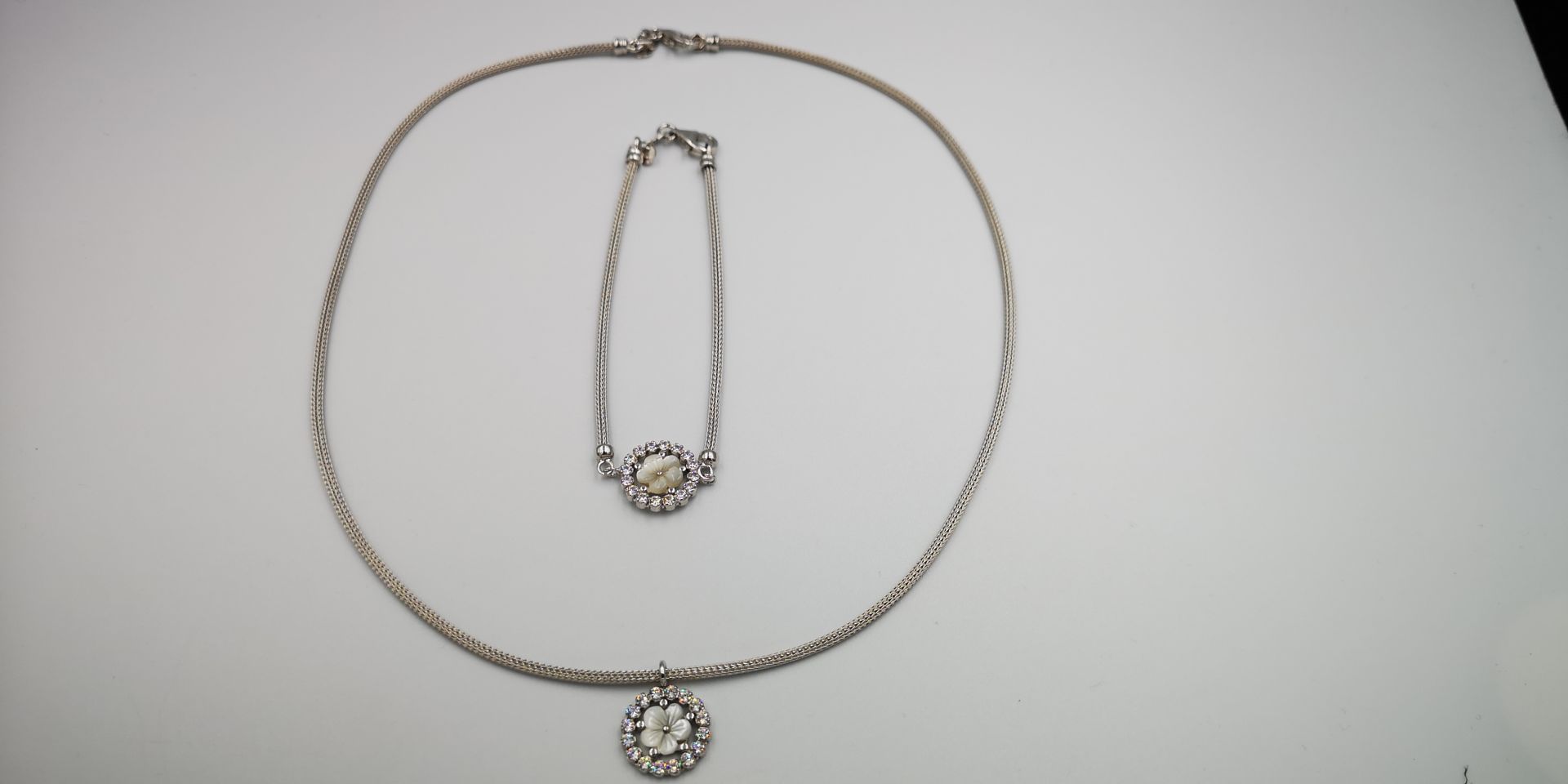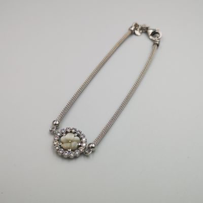 Ezüst női karkötő hengeres kígyó stílus,virág alakú medállal melyet átlátszó cirkóniák díszítik.Ródum bevonattal van ellátva,hogy jobban ellenálljon a környezeti hatásoknak és sokáig megőrizze az ezüst fényét. A karkötő mellé nyaklánc is kapható melynek cikkszáma: LNCZ 634