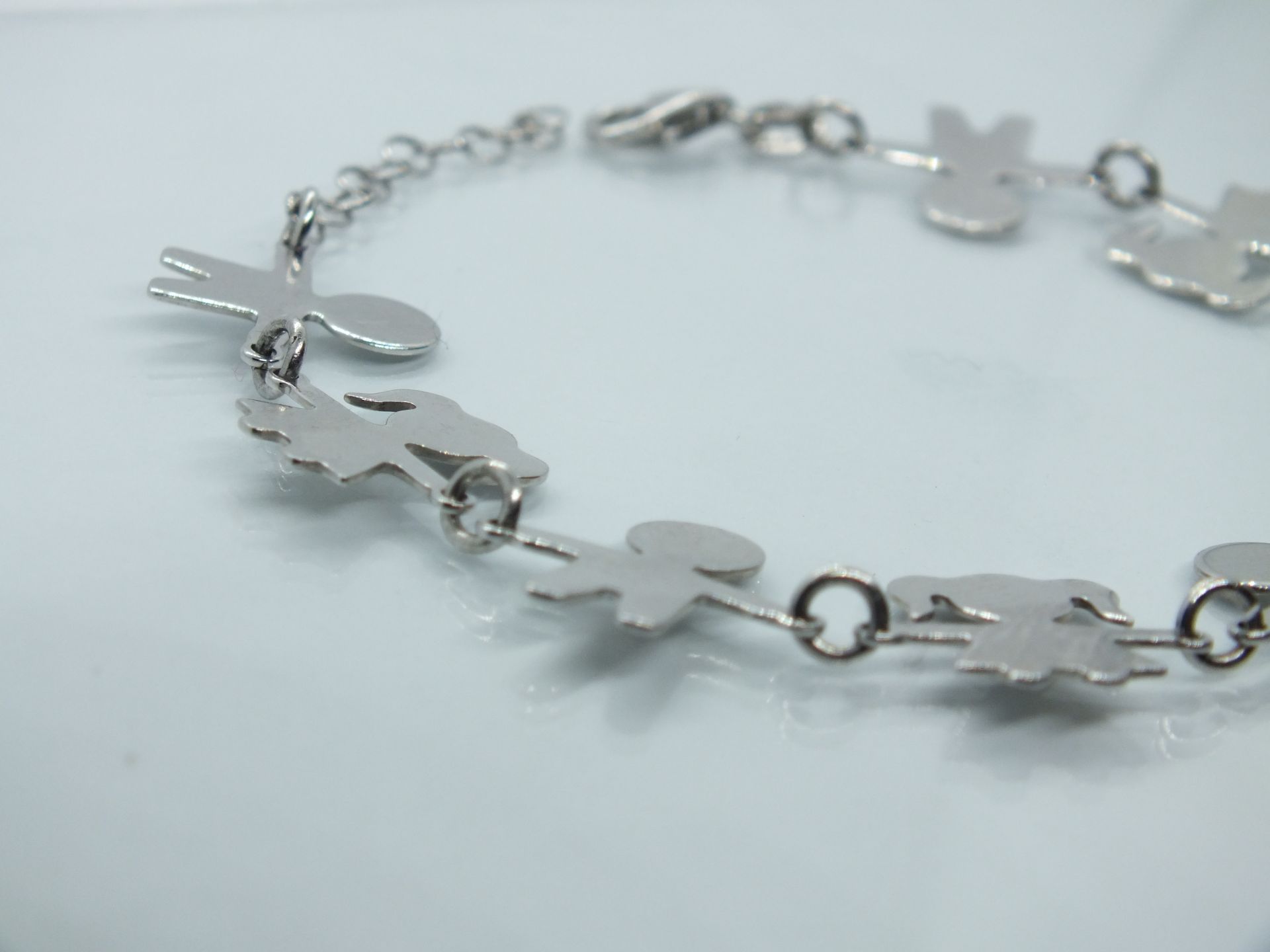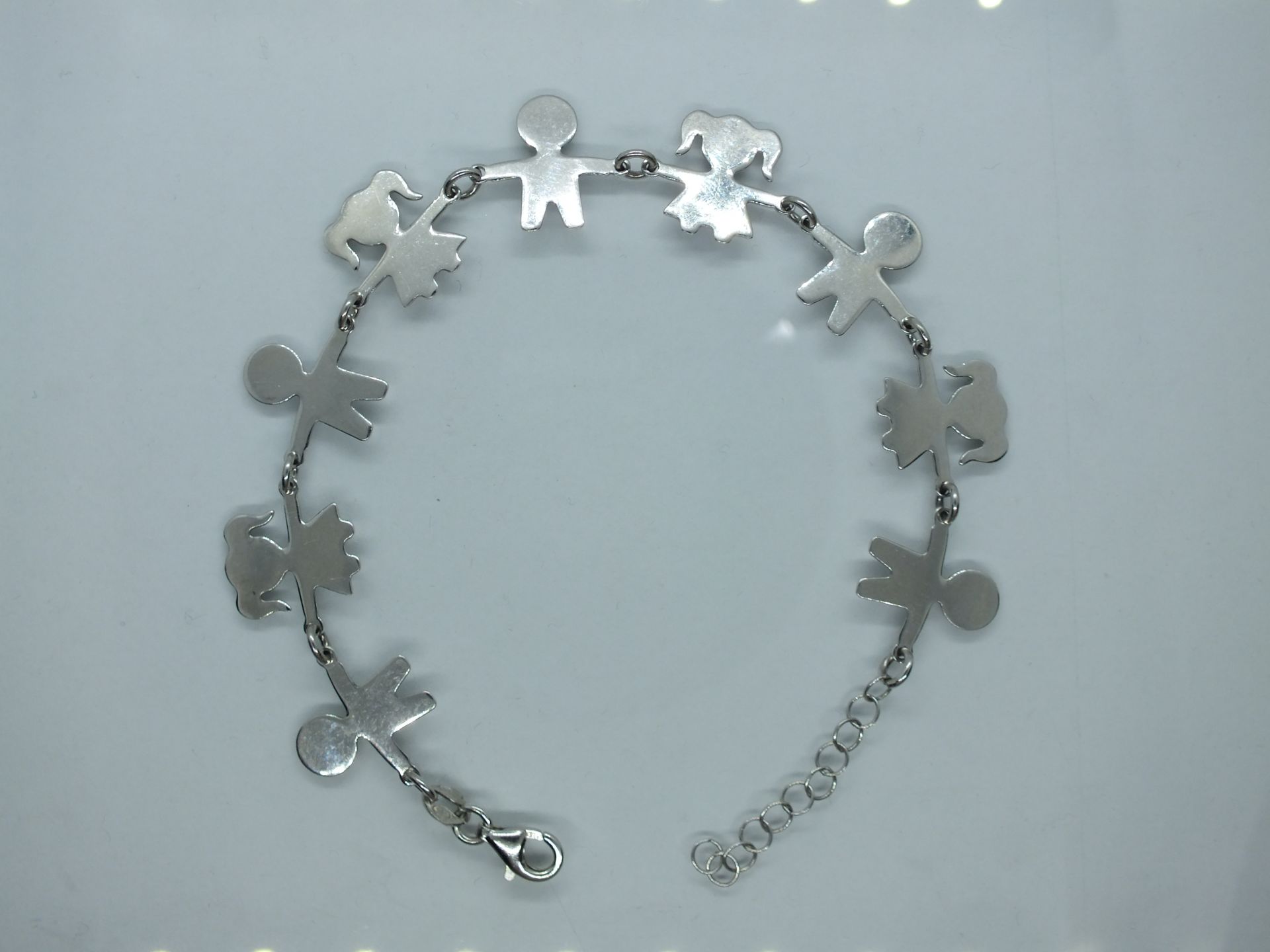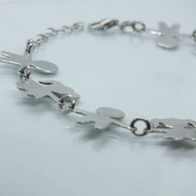Ezüst női karkötő gyermek figurákkal díszítve. Ródium bevonattal van ellátva,hogy jobban ellenálljon a környezeti hatásoknak és sokáig megőrizz az ezüst fényét.