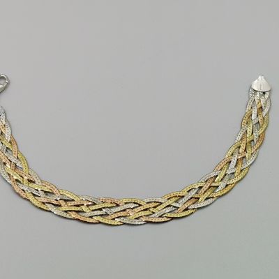 6 szálból álló ezüst fonott női karkötő matt tricolor színben.