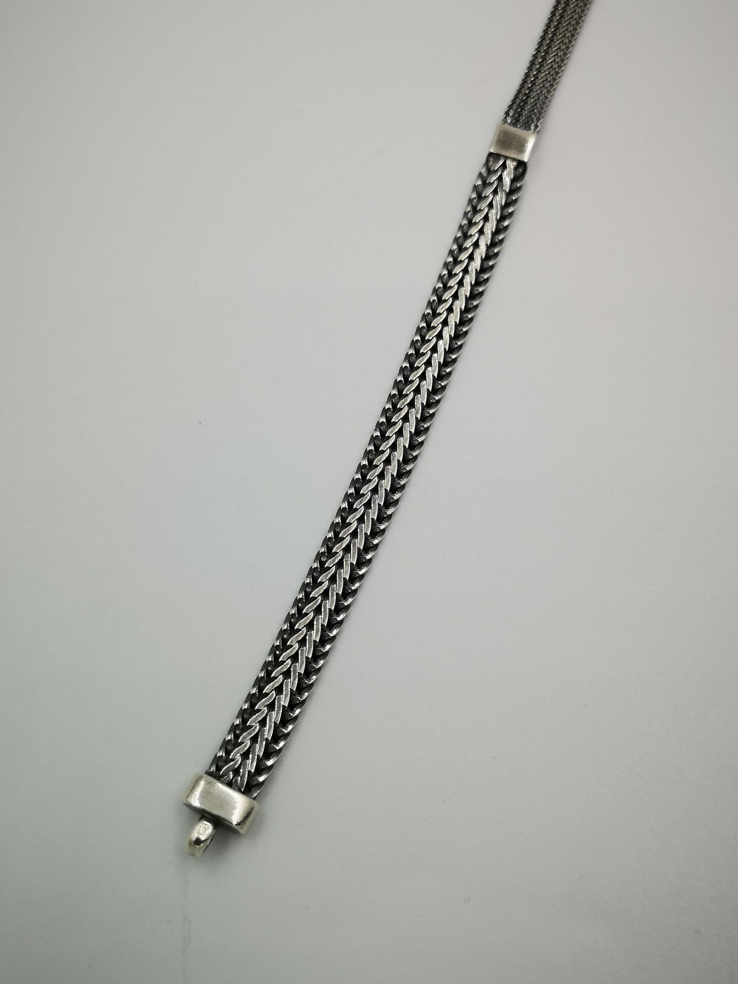 Ezüst férfi karkötő kocka kígyó és lapított kígyó stílus. Ródium bevonattal van ellátva,hogy jobban ellenálljon a környezeti hatásoknak és sokáig megőrizze az ezüst fényét.