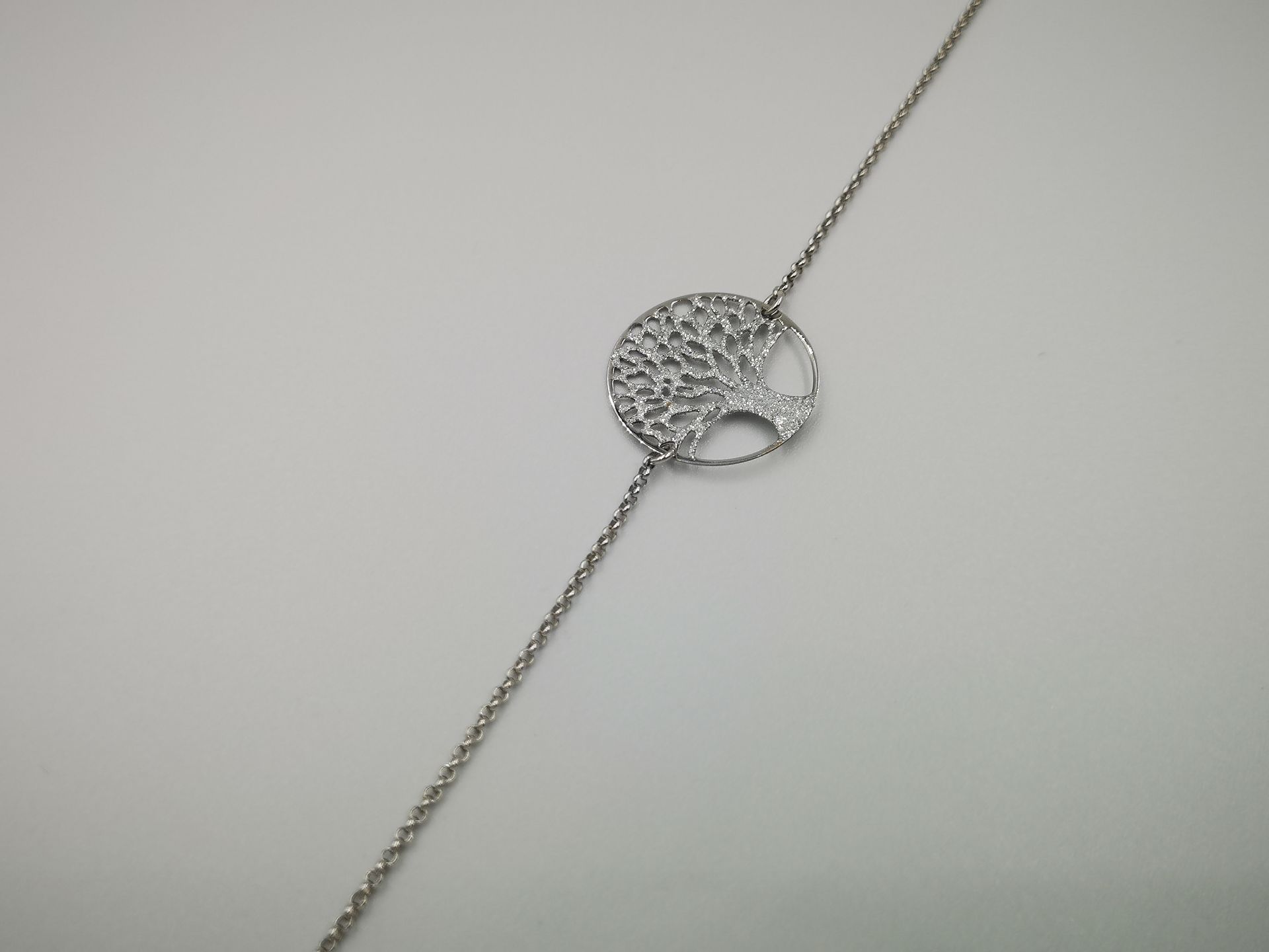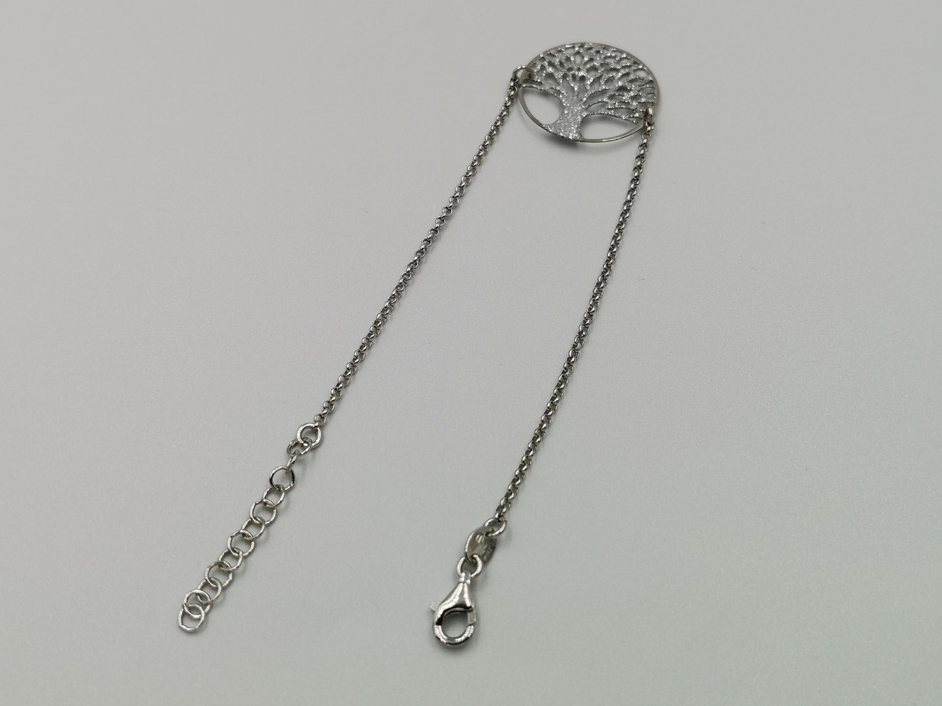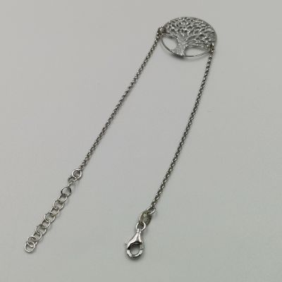 Ezüst női karkötő anker láncszemek középen élet fája medállal. Az élet fája motívum vésett. Ródium bevonattal van ellátva, hogy jobban ellenálljon a környezeti hatásoknak és sokáig megőrizze az ezüst fényét.