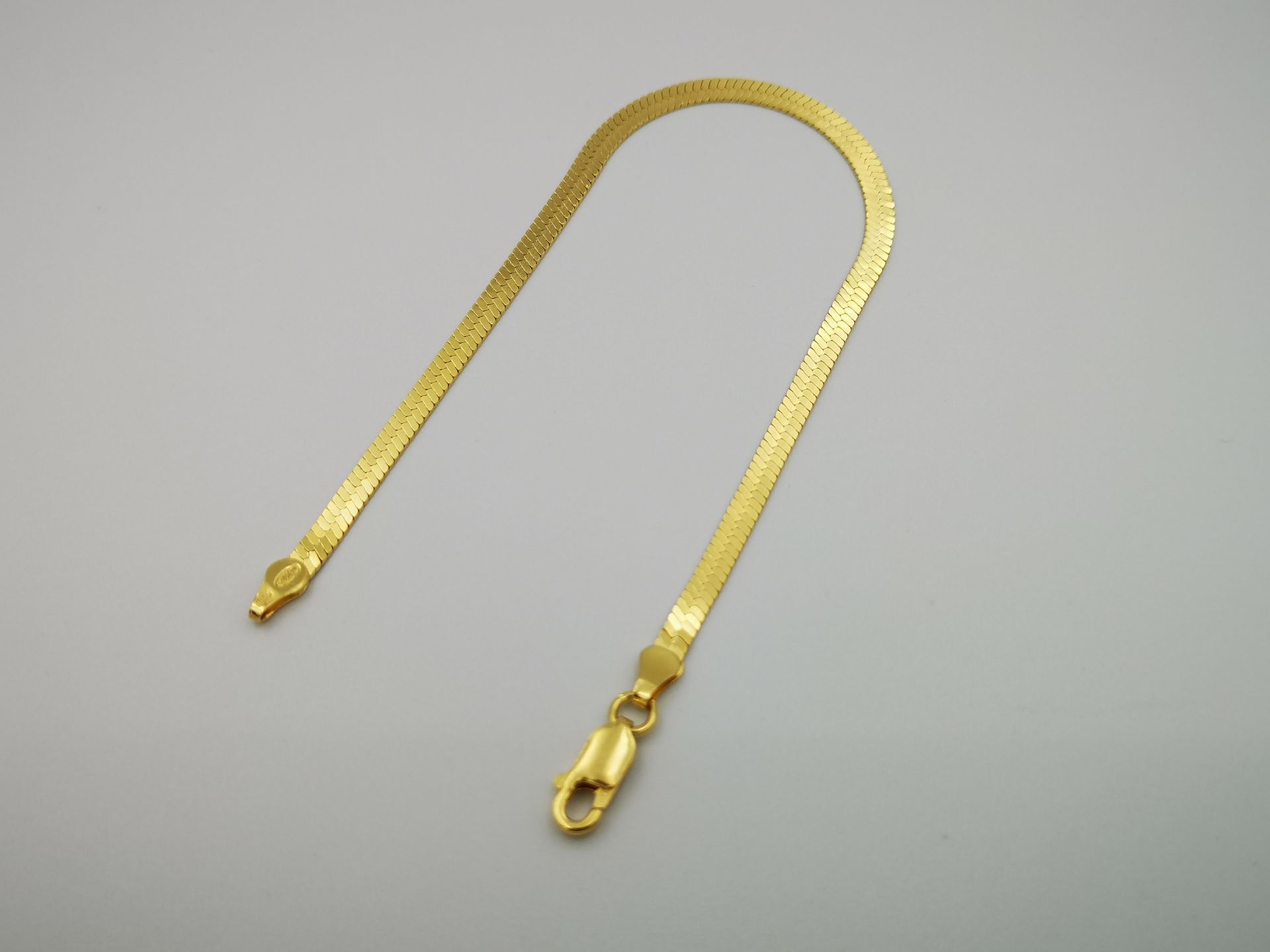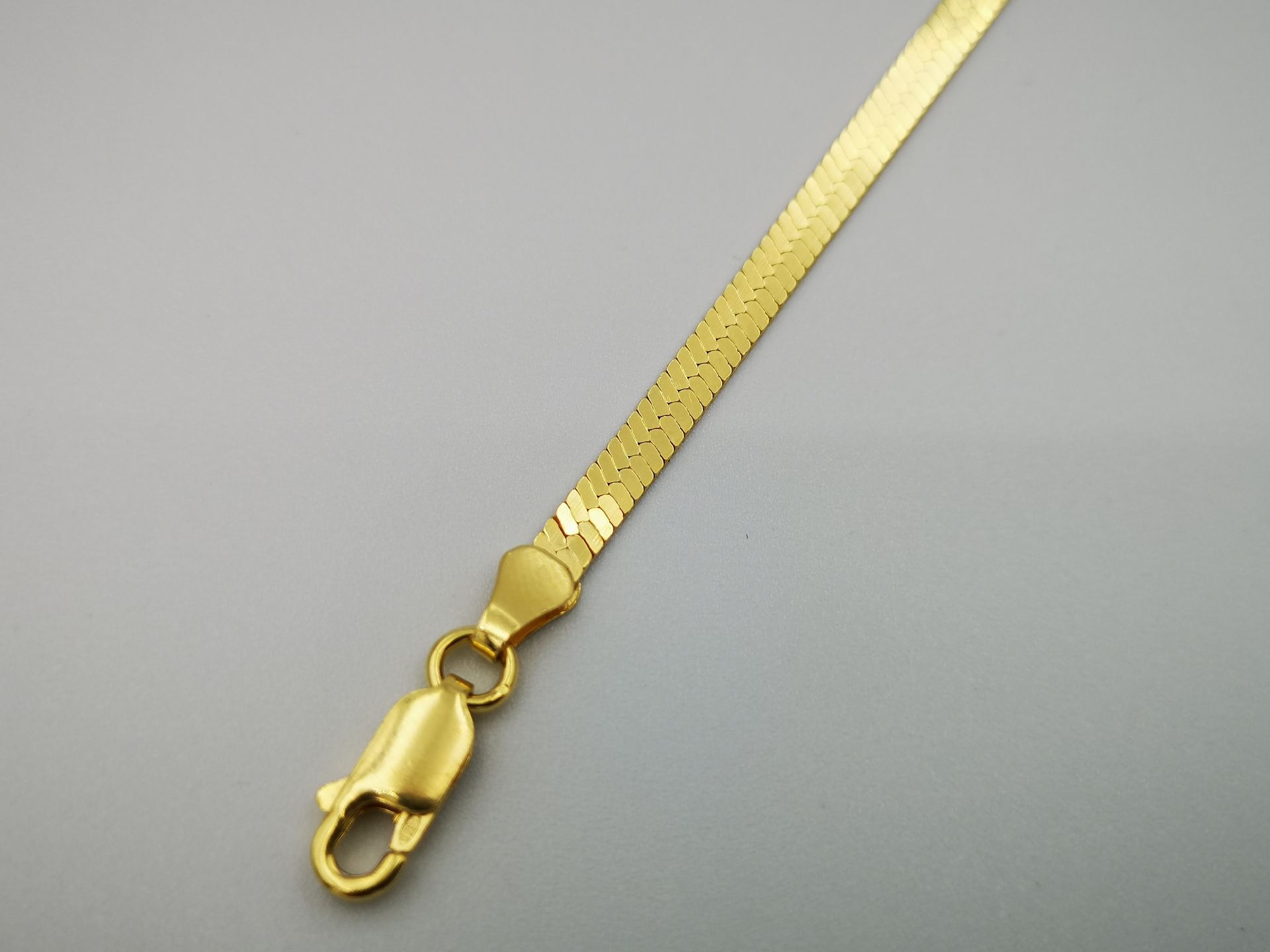 Ezüst női karkötő,aranyozott lapított fazon. Karkötő hossza:18cm Szélessége:3,1mm Vastagsága:0,5mm