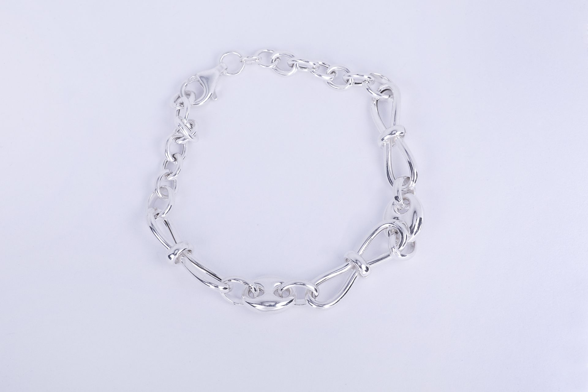 Ezüst női karkötő kerek és hosszúkás szemekből áll. Karkötő hossza:19cm Szélessége:5,9-7,8mm Vastagsága:1,3-1,9mm