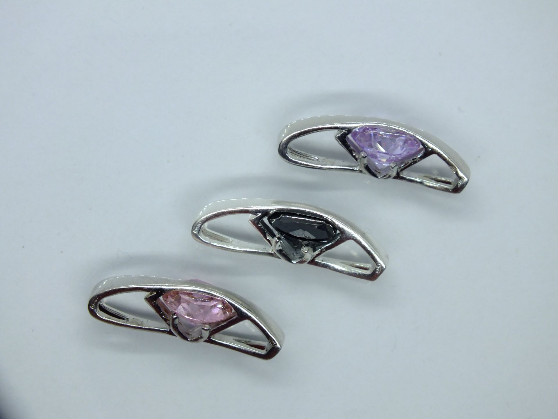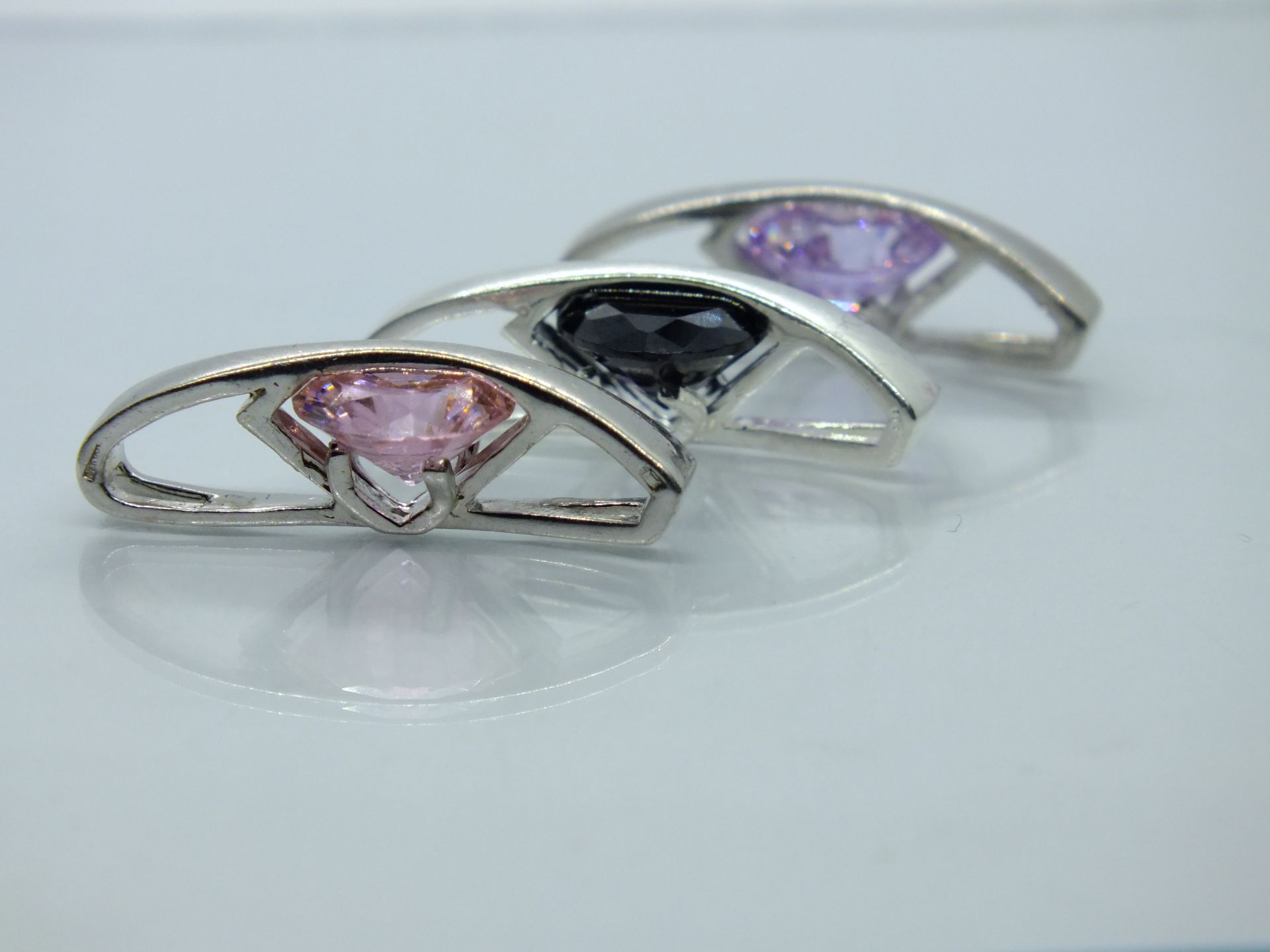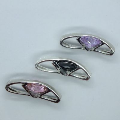Női ezüst medál,hullámos félkör alak csiszolt cirkónia foglalatban.