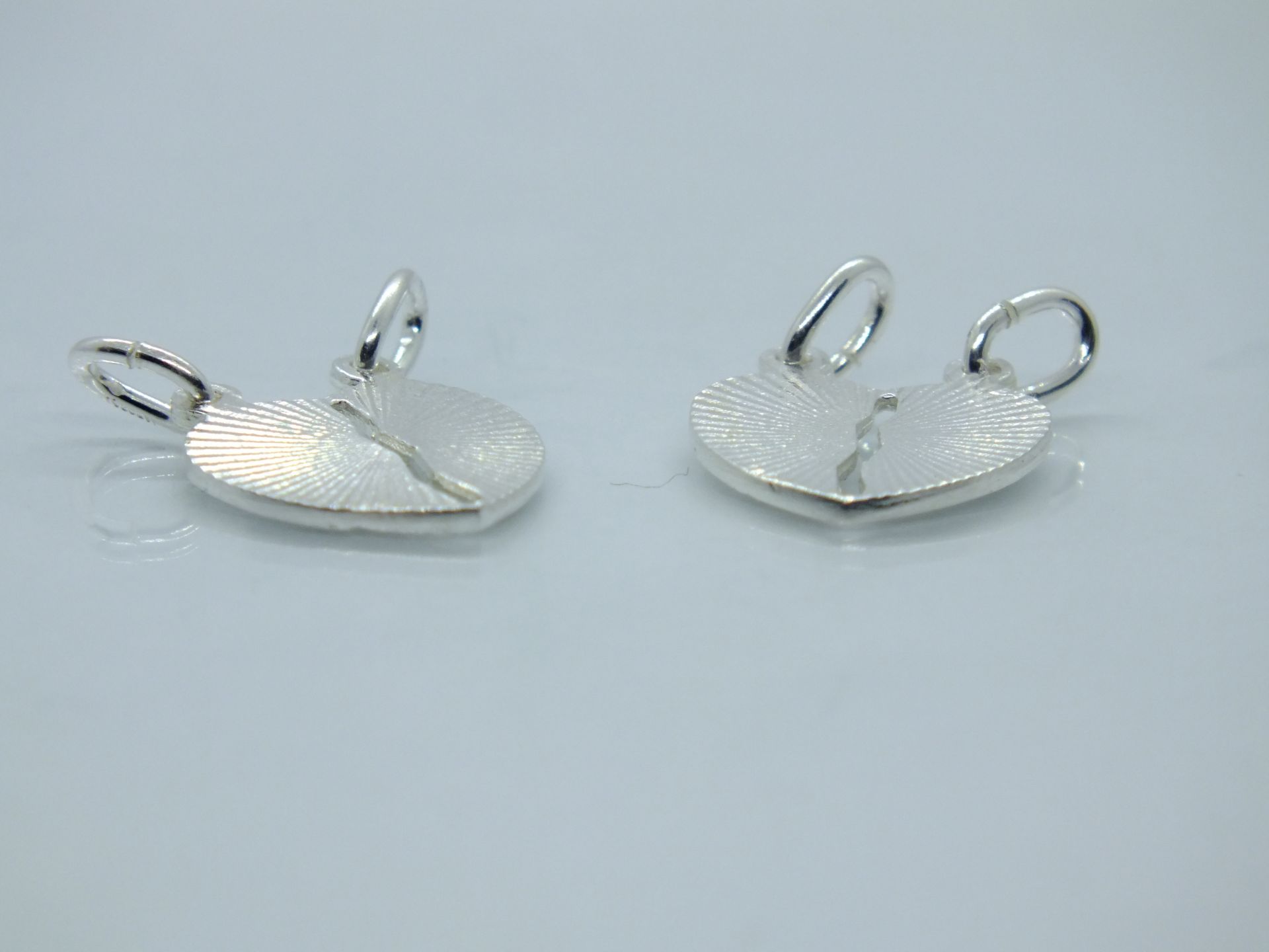 Szív alakú ezüst medál,különböző alakú beütésekkel. Medál hossza:26,8mm Szélessége:23,1mm Vastagsága:1mm