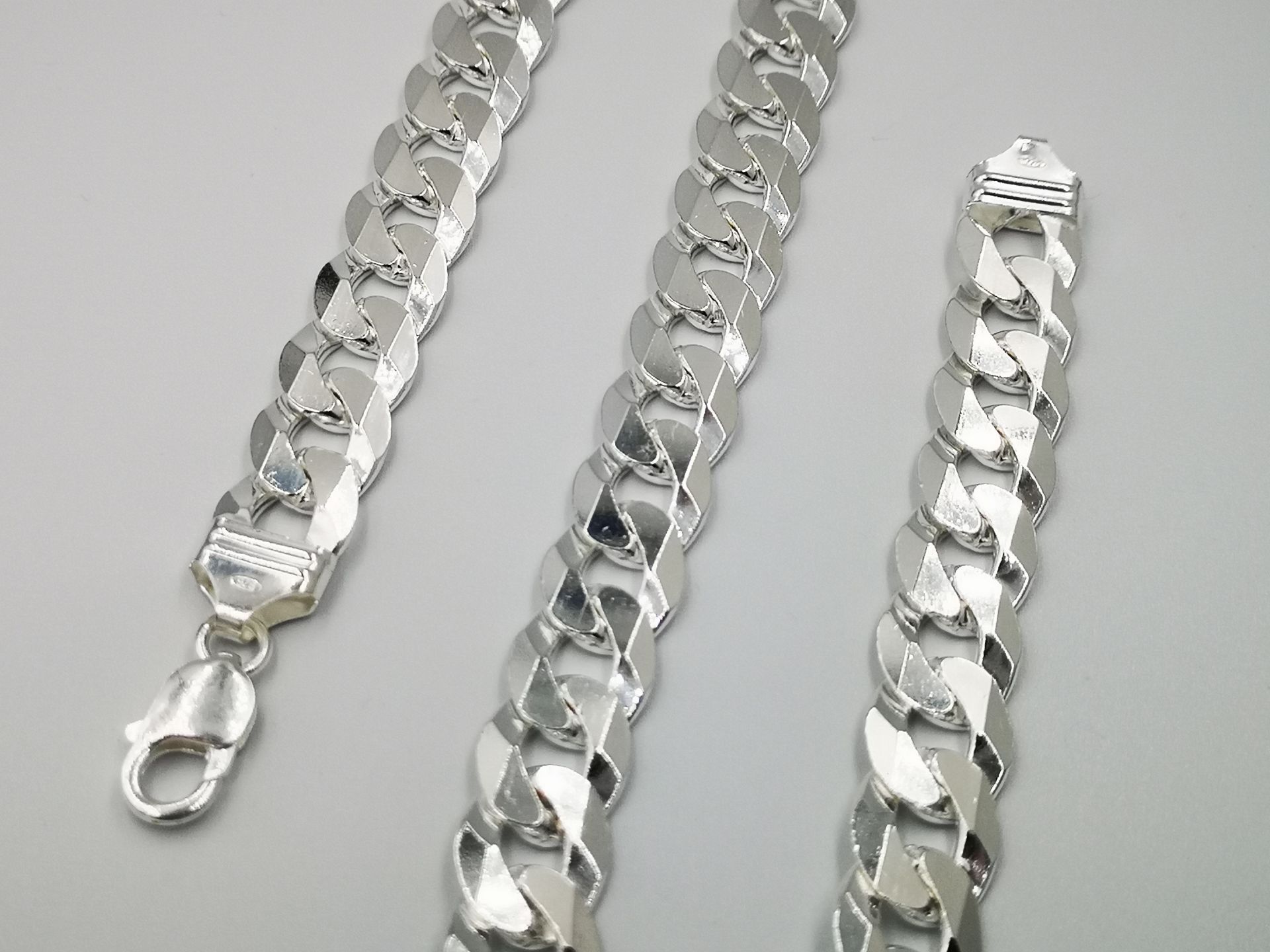 Férfi ezüst nyaklánc, pancer stílus. Nyaklánc hossza: 60 cm Szélessége: 17 mm Vastagsága: 3,7 mm Ajándék tisztító folyadékkal!