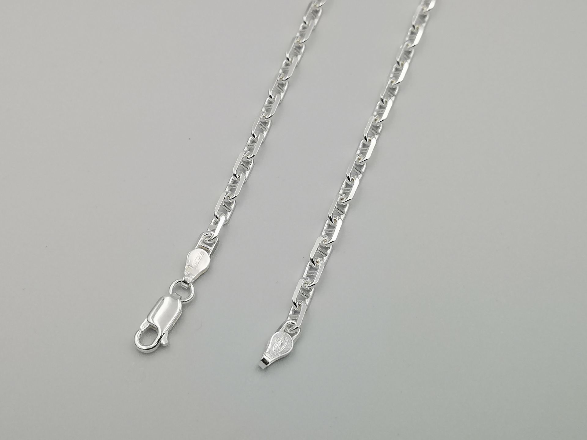 Ezüst nyaklánc,fordított szemekkel pálcás pancer stílus.