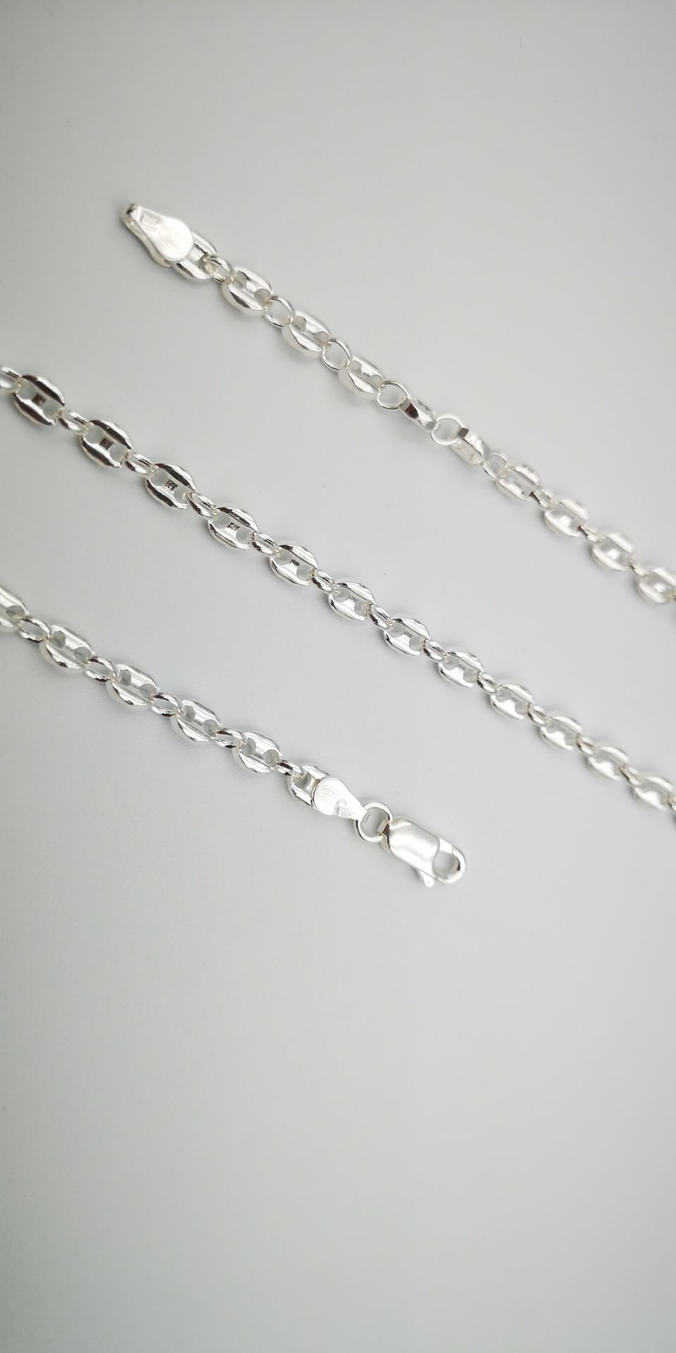 Ezüst Nyaklánc,anker stílus ovális szemekkel.