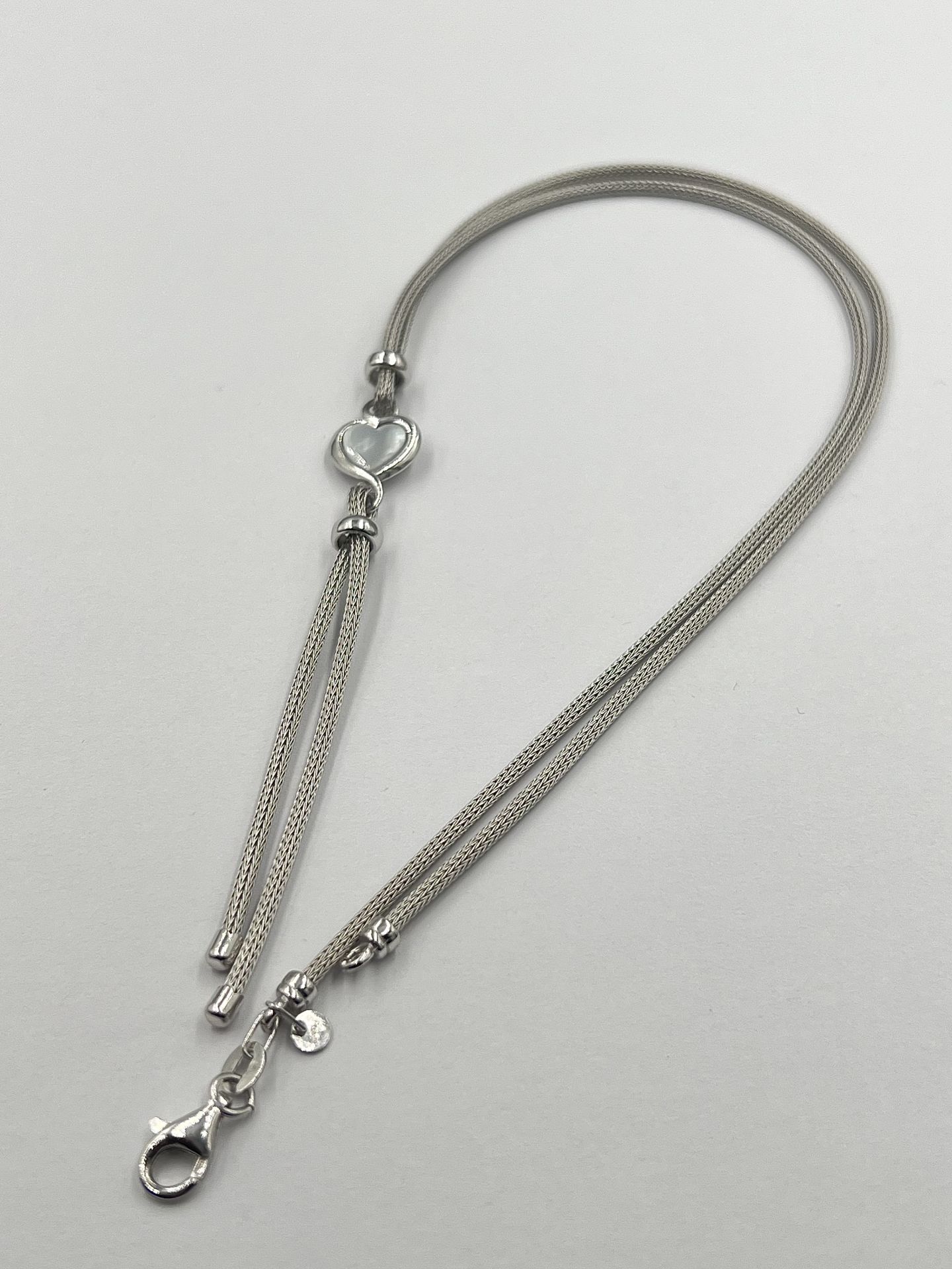 Ezüst női elegáns nyaklánc hengeres kígyó stílus, szív alakú medállal díszítve. Ródium bevonattal van ellátva, hogy jobban ellen álljon a környezeti hatásoknak és megőrizze az ezüst fényét.