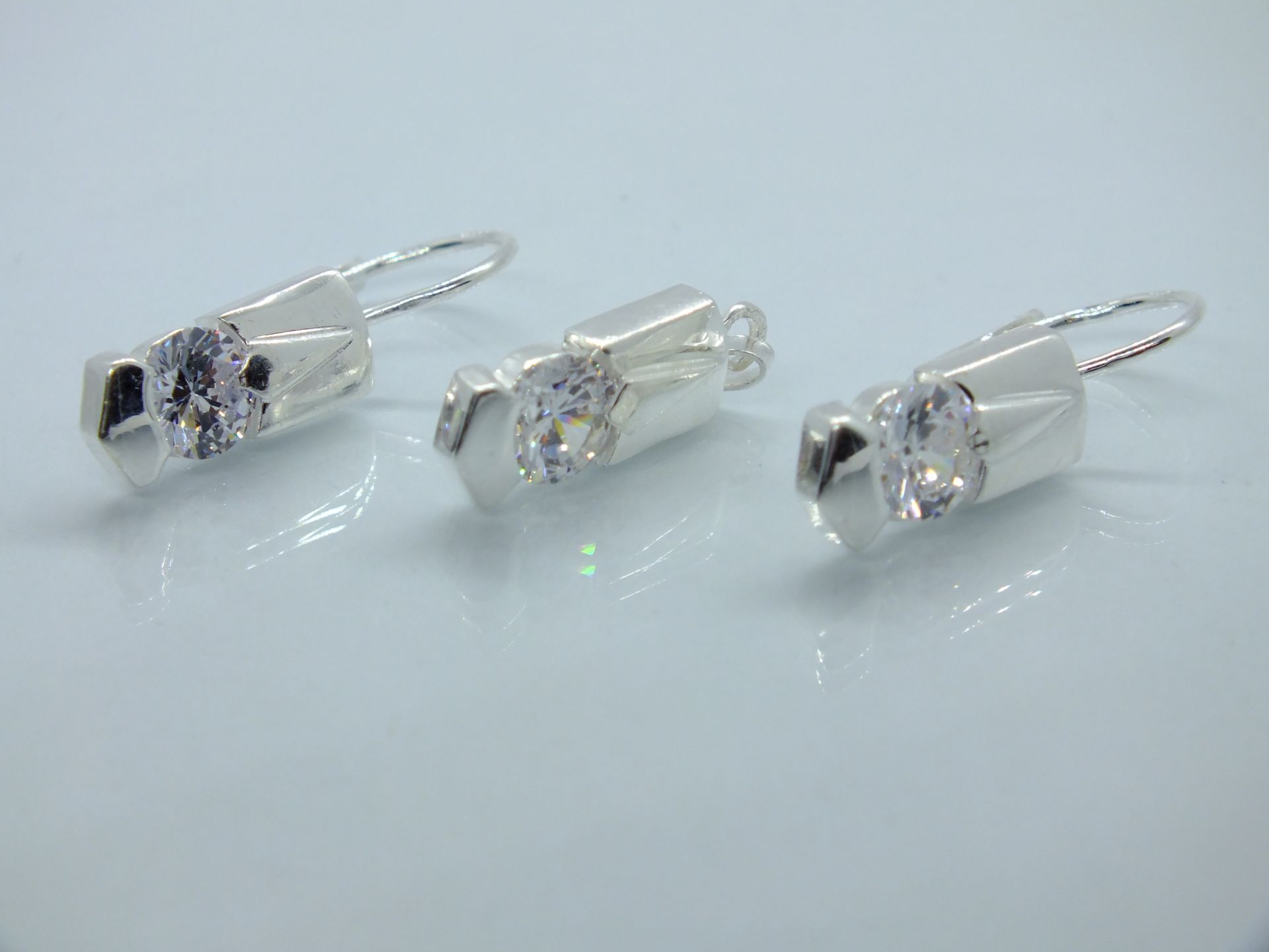 Ezüst női szett,medállal és fülbevalóval.Téglalap alakja átlátszó cirkónia kő foglalatban.Egy pár átlátszó köves...