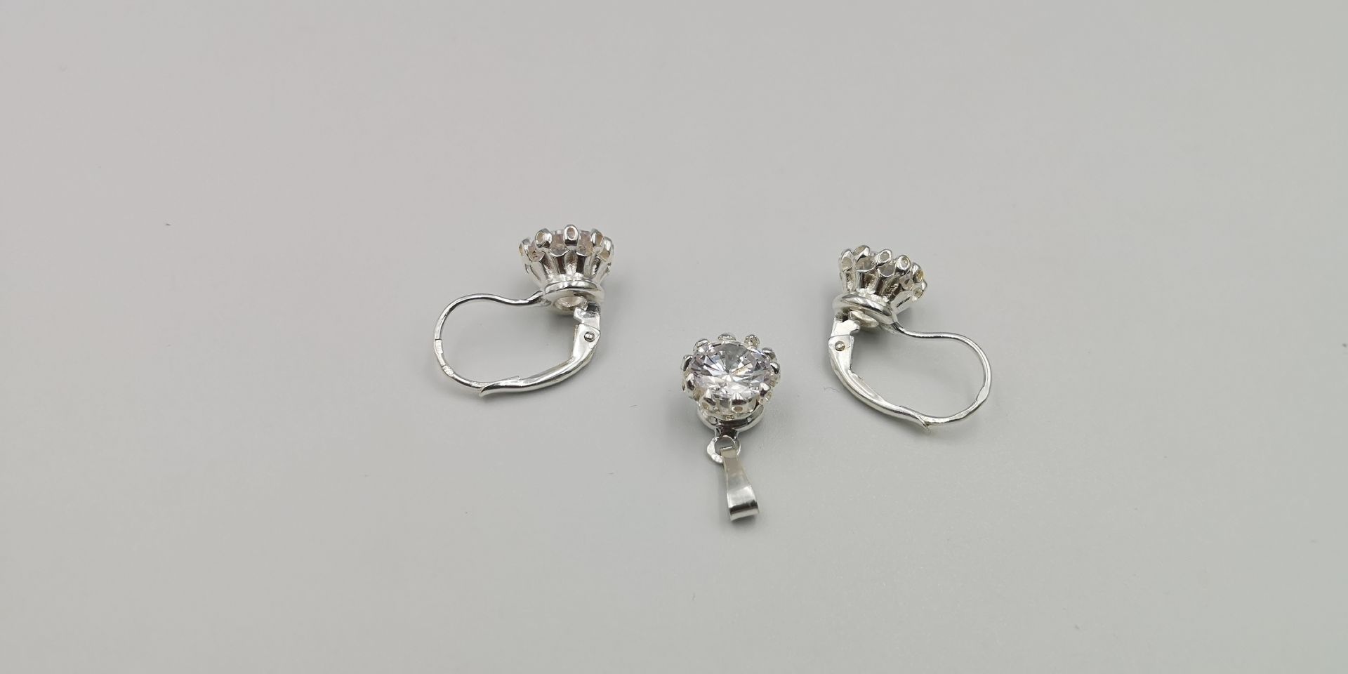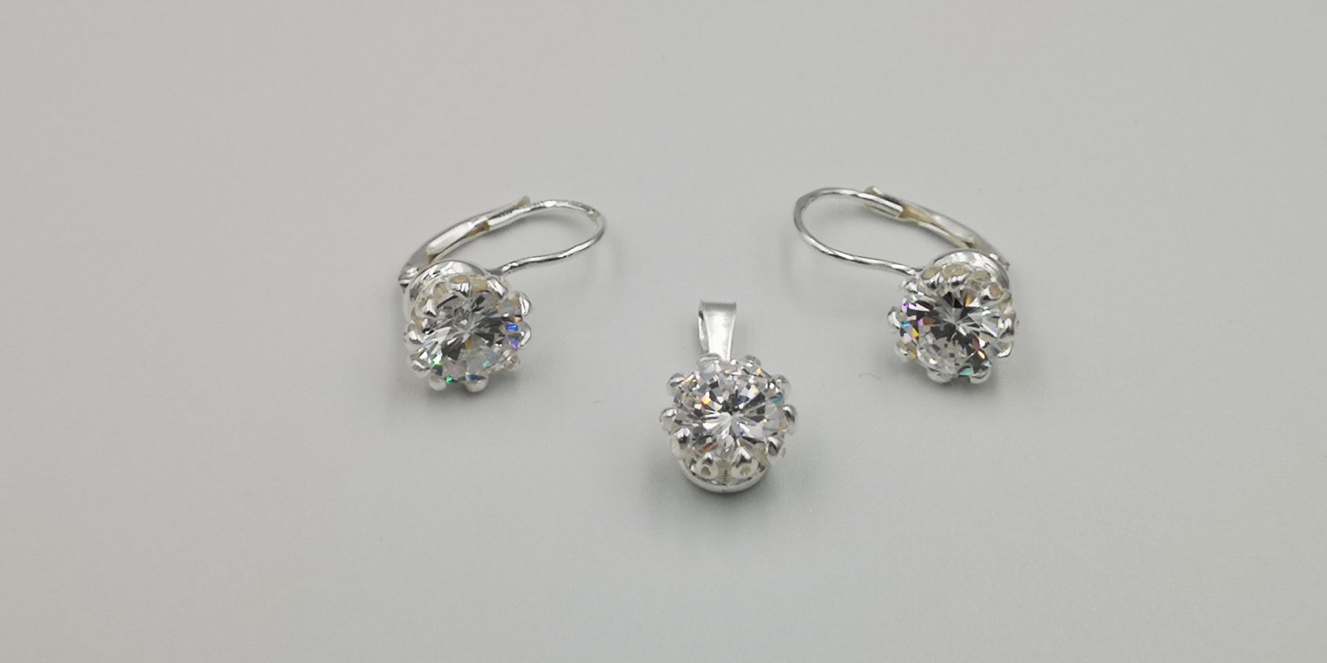 Női ezüst szett,medállal és fülbevalóval.Kör alakú átlátsz cirkónia kő foglalatban.