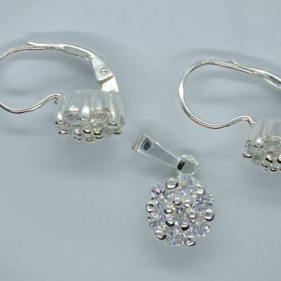 Ezüst női szett fülbevalóval és medállal.Virág alakja átlátszó cirkóniákkal díszített.