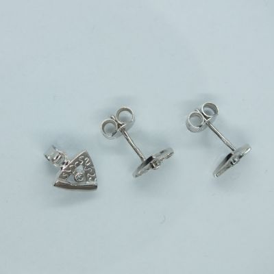 Ezüst női szett fülbevalóval és medállal.Háromszög alakú,közepén átlátszó és rózsaszín színű swarovski kő berakás.