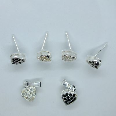 Ezüst női szett fülbevalóval és medállal.Szív alakja fekete swarovski kövekkel díszített.