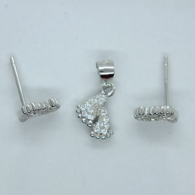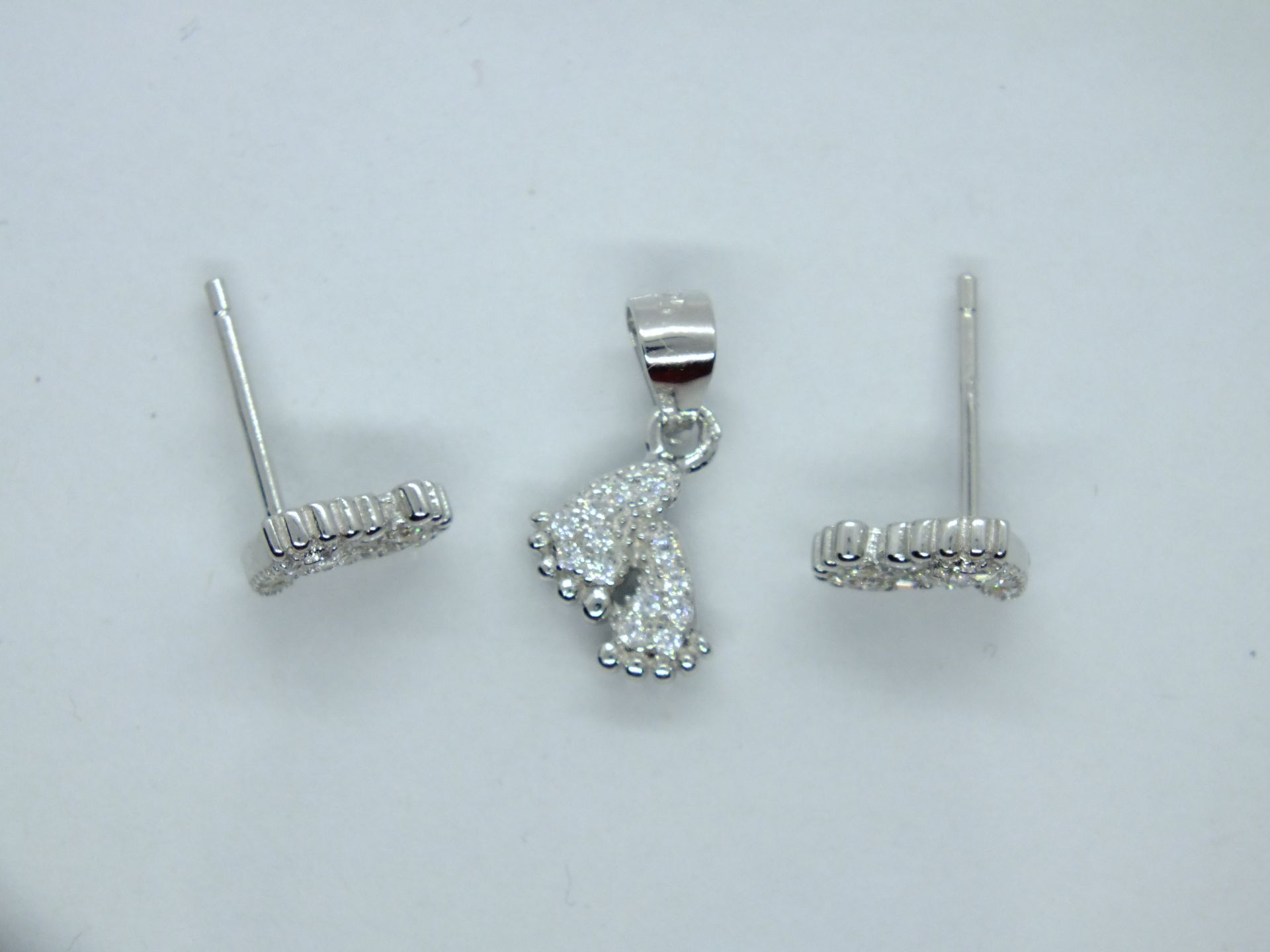 Ezüst női szett medál és fülbevlóval.Baby tappancsok átlátszó cirkónia díszítéssel.