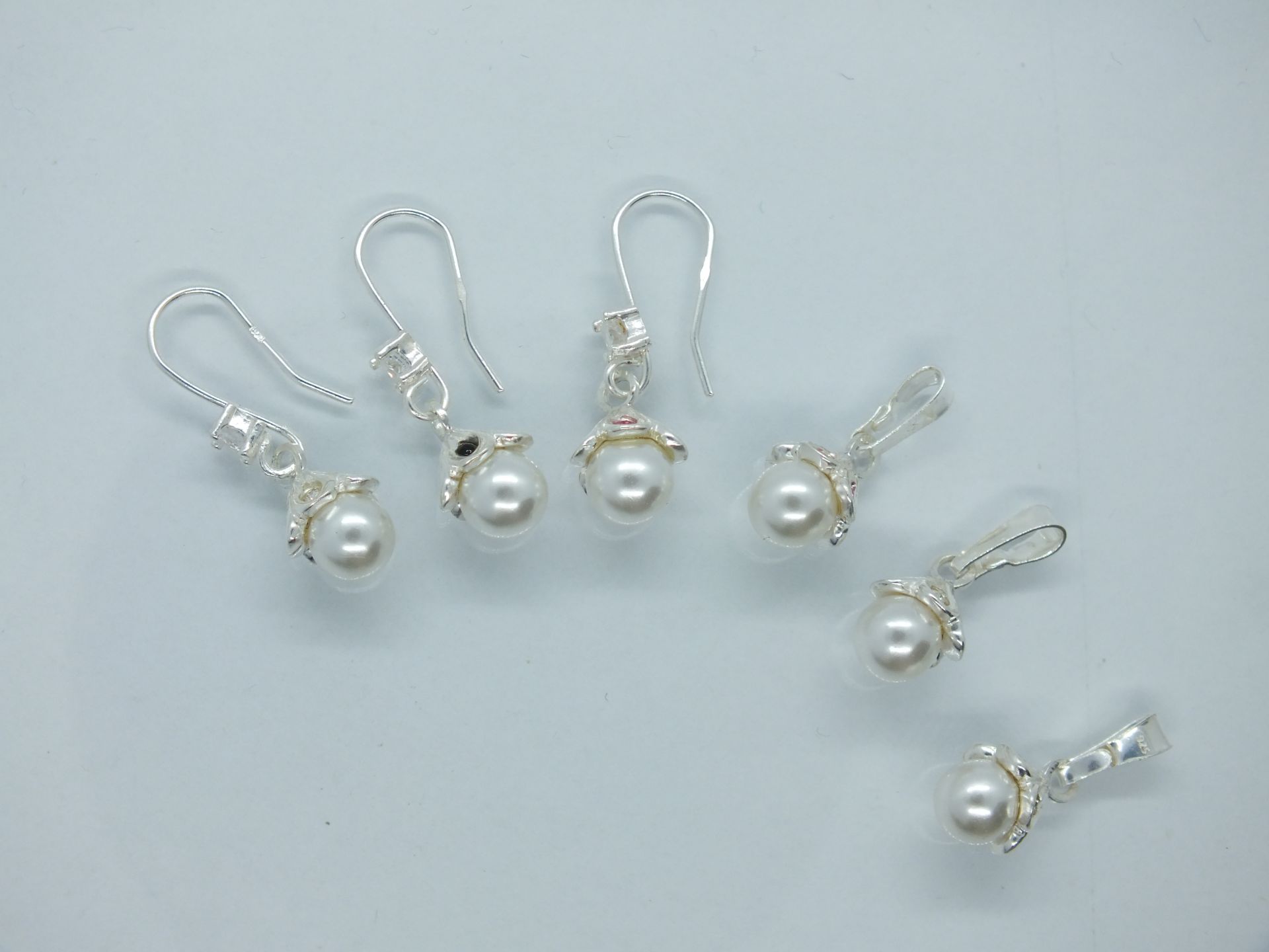 Ezüst női szett fülbevalóval és medállal.Virág forma középen fehér gyöngy berakással. ...